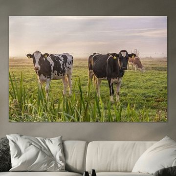 Young cows in the morning mist by Yvonne van Driel