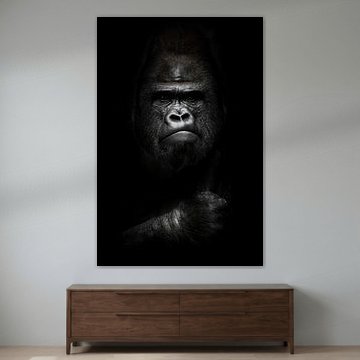 face and powerful hand in the dark. Portrait of a powerful dominant male gorilla (physiognomy), ster by Michael Semenov