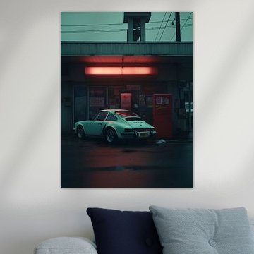 The teal and blue shades in Porsche 911 create a cool, calm backdrop that pairs beautifully with warm accent colors like brown or taupe. Try placing this artwork in a room with wooden furniture or warm textiles to create balance and visual interest in your space.