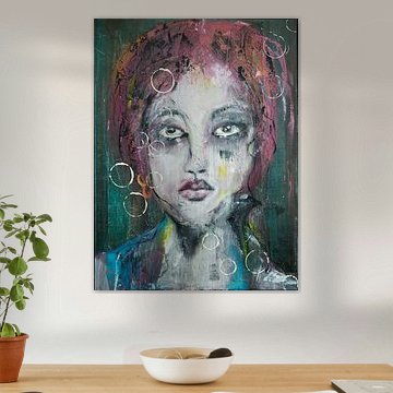 The collection spans soft pastel tones and vibrant color contrasts, perfect for modern and eclectic interiors alike. Works like Trendsetter, modern portrait blend whimsy with refinement, while pieces such as Closer explore layered, dreamy compositions that draw you in.