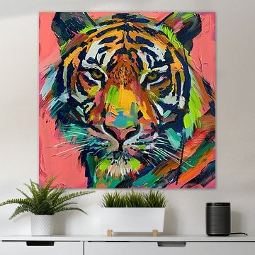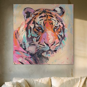 The collection spans soft pastel tones and vibrant color contrasts, perfect for modern and eclectic interiors alike. Works like Trendsetter, modern portrait blend whimsy with refinement, while pieces such as Closer explore layered, dreamy compositions that draw you in.