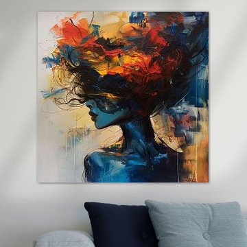 The collection spans soft pastel tones and vibrant color contrasts, perfect for modern and eclectic interiors alike. Works like Trendsetter, modern portrait blend whimsy with refinement, while pieces such as Closer explore layered, dreamy compositions that draw you in.