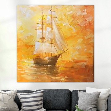 Sailing artworks work beautifully in landscape format, which mirrors the wide horizons and open waters that define this theme. A landscape piece looks striking above a sideboard in your hallway or centered over a sofa in your living room. The horizontal composition naturally draws the eye across the scene, creating a sense of space and movement. That said, square formats can work well on smaller walls or when you're grouping multiple sailing pieces together.