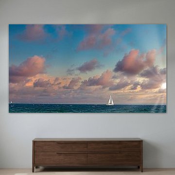 With sailboat photography on canvas, the feeling of floating on your sailboat comes very close. Do you think of sailing as hard work with strong winds? You can find that too in our collection of Sailing wall art. You can buy photo wallpaper with a sailboat, buy a sailboat painting or choose photography sailboat on acrylic glass. We pull out all the stops to deliver your favourite work to your home as soon as possible.