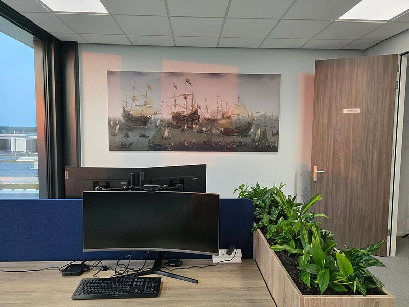 Naval battle scenes bring energy and movement to a room. Place The Battle of Chatham, Willem van Der Stoop on a feature wall where it has space to breathe - think above a sideboard in your dining room or facing your seating area. The composition rewards closer viewing, so avoid tucked-away corners.