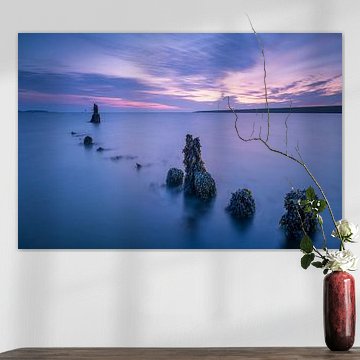 Choose ArtFrame™ and you benefit from easy interchangeability and premium quality. When you want to refresh the melancholic, nostalgic atmosphere of Shipwreck with a different mood or color palette, simply swap the print in minutes without replacing the entire frame. The modern aluminum frame is available in gold, black, white, or silver, so you can match it to your interior as the blue and teal tones shift throughout the day. Beyond visual appeal, ArtFrame™ offers optional acoustic panels that reduce echo, making it particularly useful in living rooms where the calm mood of Shipwreck helps create a peaceful environment.
