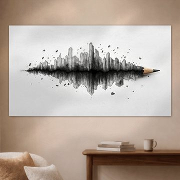 Urban skyline in an elegant pencil stroke by Frank Heinz