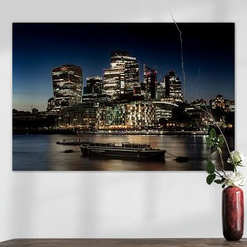 The living room is a good spot for Skyline artworks. These cityscapes create natural conversation starters above your sofa or sideboard, drawing the eye without overwhelming the space. The blue and taupe tones found throughout this collection complement neutral interiors while adding depth. Pair a skyline photograph or painting with simple furniture to let the urban architecture take center stage, and consider how natural light will interact with the artwork throughout the day.