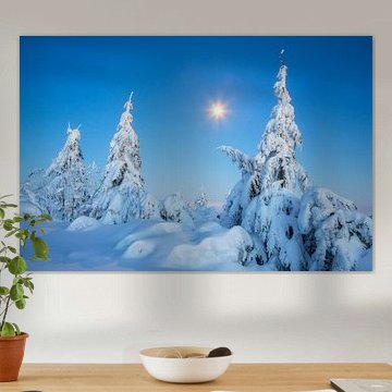 Never wait for it to snow again. Buy a snowy landscape painting or photo print for your wall. Go for snow wall art on canvas or an ice painting with snow as indoor wallpaper. The beautiful art prints of snowy mountains are also an all-time favourite as wall art, especially when printed on acrylic glass.