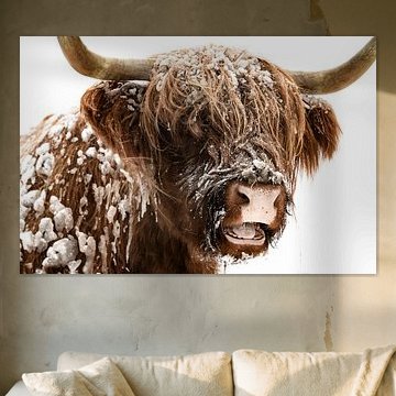 Portrait of a Scottish Highland cattle in the snow by Sjoerd van der Wal Photography