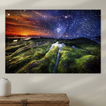 Abstract blue hour with a seagull over the North Sea by Yanuschka | Fotografie Noordwijk