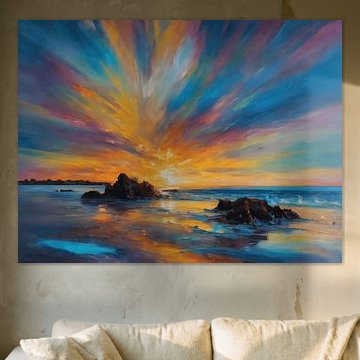 Buy your favourite sunset painting here, behind the sea or an impressive skyline. A sunset on canvas creates a wonderful atmosphere in your home or office. Buy sunset wall art as photo wallpaper as an impressive eye-catcher, or order a sunset painting on canvas. Do you prefer a more chic interior? Then order a high quality a sunset photo print on luxurious glass.