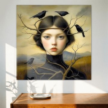 Portrait-oriented Surrealism makes a strong statement on narrow walls or in vertical spaces like hallways and beside doorways. The upright format draws the eye upward and works particularly well for figurative or symbolic compositions that benefit from height. A portrait piece on Canvas with mirrored edges extends the dreamlike imagery around the sides for an immersive effect. Square formats work better when you want a balanced, grounded presence above a console table or nightstand. Choose the format that fits your wall dimensions and gives the surrealist imagery room to breathe.