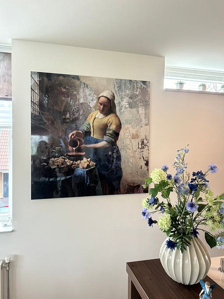 Brown and taupe shades bring warmth without overwhelming your space. These colors work beautifully alongside soft blues or greens to create subtle depth. The teal and anthracite tones in The Milkmaid of Joh. Vermeer in a modern version. pair naturally with neutral furniture and textured fabrics like linen or wool.