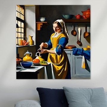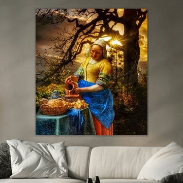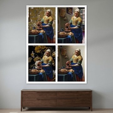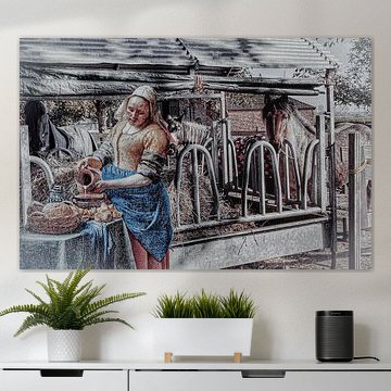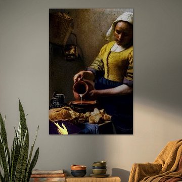 Buy a famous painting by one of the best Dutch old masters. Vermeer's Milkmaid is a classic famous painting and is now affordable as a high-quality art print. Would you rather have a modern version of the Milkmaid? Then buy this old master painting with a twist. The milkmaid is a painting for people who love classical wall art. Buy the Milkmaid in a large format wallpaper, or choose a nice canvas of the modern Milkmaid version.