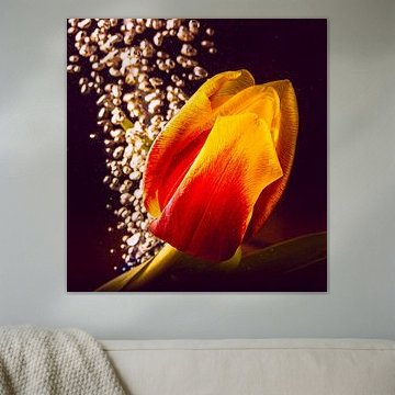 Buy a painting with tulips, and you will bring colour into your home. Wall art prints with flowers brighten up your home. Think of a tulip painting or photo art with tulips on it. If you want something slightly different, think about a modern abstract tulip painting. Want to make a big statement? Then indoor wallpaper of tulips is perfect. Or do something slightly different and buy a round tulip artwork.