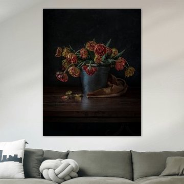Buy a painting with tulips, and you will bring colour into your home. Wall art prints with flowers brighten up your home. Think of a tulip painting or photo art with tulips on it. If you want something slightly different, think about a modern abstract tulip painting. Want to make a big statement? Then indoor wallpaper of tulips is perfect. Or do something slightly different and buy a round tulip artwork.