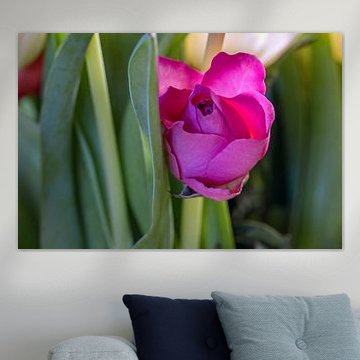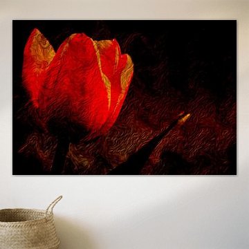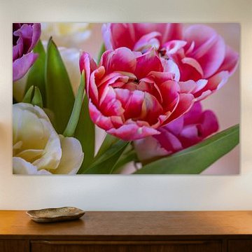 Buy a painting with tulips, and you will bring colour into your home. Wall art prints with flowers brighten up your home. Think of a tulip painting or photo art with tulips on it. If you want something slightly different, think about a modern abstract tulip painting. Want to make a big statement? Then indoor wallpaper of tulips is perfect. Or do something slightly different and buy a round tulip artwork.