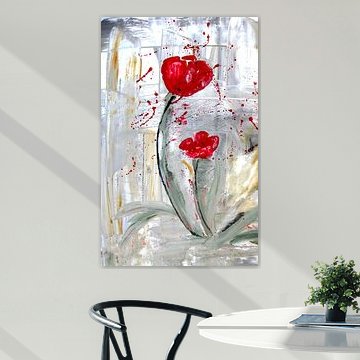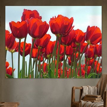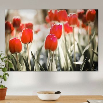 Buy a painting with tulips, and you will bring colour into your home. Wall art prints with flowers brighten up your home. Think of a tulip painting or photo art with tulips on it. If you want something slightly different, think about a modern abstract tulip painting. Want to make a big statement? Then indoor wallpaper of tulips is perfect. Or do something slightly different and buy a round tulip artwork.