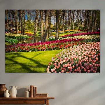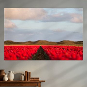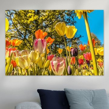 Buy a painting with tulips, and you will bring colour into your home. Wall art prints with flowers brighten up your home. Think of a tulip painting or photo art with tulips on it. If you want something slightly different, think about a modern abstract tulip painting. Want to make a big statement? Then indoor wallpaper of tulips is perfect. Or do something slightly different and buy a round tulip artwork.