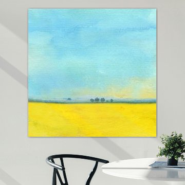 Turquoise artworks work beautifully when paired with warm beige textiles and natural wood accessories to create a balanced, inviting look. The calm and dreamy qualities of this collection make it easy to style with indoor plants - think monstera or ferns - that echo the green undertones in the palette. For a more vibrant effect, layer turquoise pieces with teal cushions or ceramic vases in complementary blue shades. Mix portrait and landscape formats to add visual rhythm and depth to your walls, creating a dynamic yet harmonious display that feels both curated and personal.