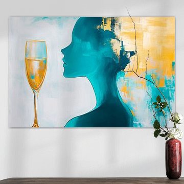 Turquoise artworks work beautifully when paired with warm beige textiles and natural wood accessories to create a balanced, inviting look. The calm and dreamy qualities of this collection make it easy to style with indoor plants - think monstera or ferns - that echo the green undertones in the palette. For a more vibrant effect, layer turquoise pieces with teal cushions or ceramic vases in complementary blue shades. Mix portrait and landscape formats to add visual rhythm and depth to your walls, creating a dynamic yet harmonious display that feels both curated and personal.