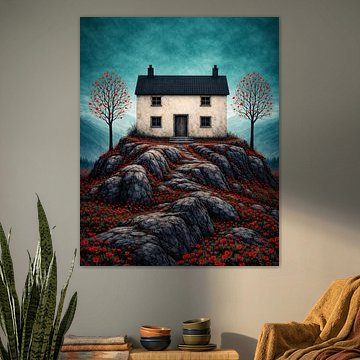 Surrealist portraits with vibrant skies work beautifully in rooms where you want to spark conversation and curiosity. The bold blue background and whimsical details in Magic glasses suit a creative workspace, hallway, or reading corner where the playful imagery can be appreciated up close.