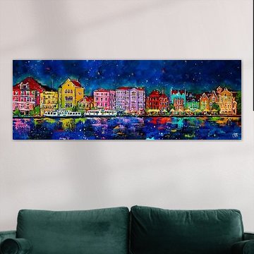 Trading quay at night Curaçao by Happy Paintings / Renata Rolefes