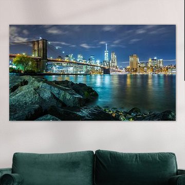 The Brooklyn Bridge + Skyline (Night) by Fabian Bosman