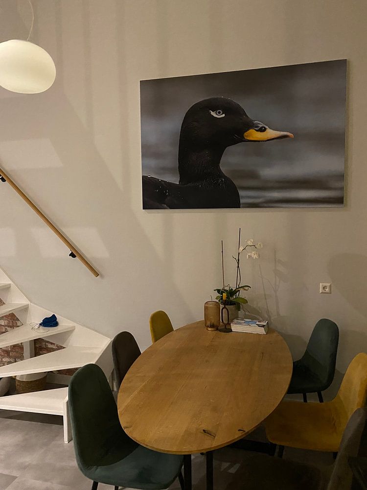 Water birds artworks fit naturally into Scandinavian and coastal interiors. The blue and grey tones work beautifully against white or light wood furniture, while olive green and taupe shades add warmth to minimalist spaces. For a modern Scandinavian look, combine water birds with soft linen cushions and simple ceramic accessories in matching grey or beige. In coastal-inspired rooms, pair the blue hues with natural rope details and driftwood accents. The calm color palette also suits contemporary bathrooms or home offices where you want a focused, serene environment.