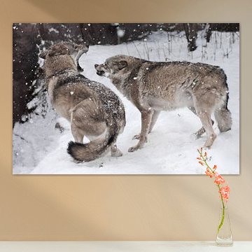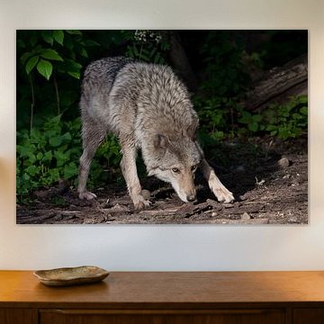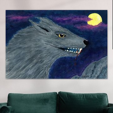 A painting of a wolf is beautiful and inspiring to hang on the wall. Buy a poster of a wolf, or choose for a wolf art print on canvas. Or have the wolf artwork printed life-size on photo wallpaper. There are several high quality materials available for your favourite wall art print of wolves. Choose your preferred size and enjoy the artwork for years to come.