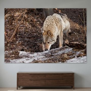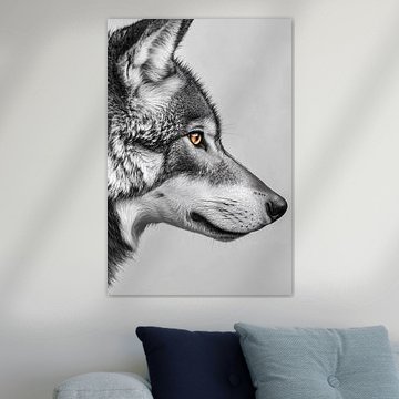 A painting of a wolf is beautiful and inspiring to hang on the wall. Buy a poster of a wolf, or choose for a wolf art print on canvas. Or have the wolf artwork printed life-size on photo wallpaper. There are several high quality materials available for your favourite wall art print of wolves. Choose your preferred size and enjoy the artwork for years to come.