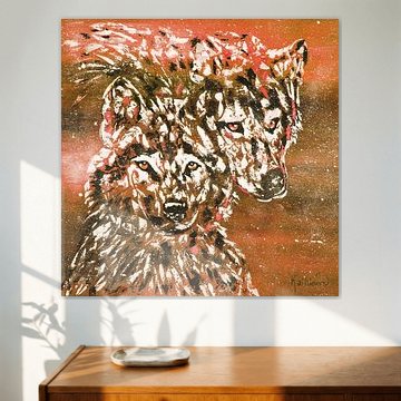 A painting of a wolf is beautiful and inspiring to hang on the wall. Buy a poster of a wolf, or choose for a wolf art print on canvas. Or have the wolf artwork printed life-size on photo wallpaper. There are several high quality materials available for your favourite wall art print of wolves. Choose your preferred size and enjoy the artwork for years to come.