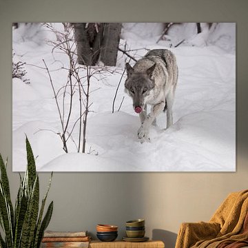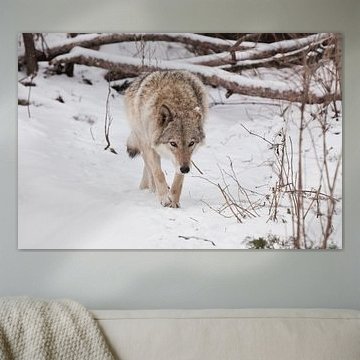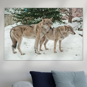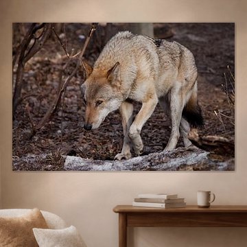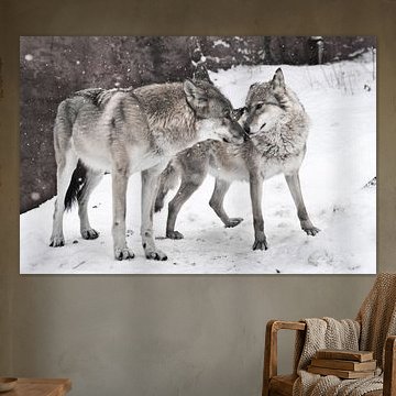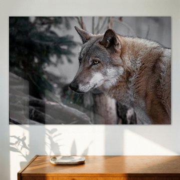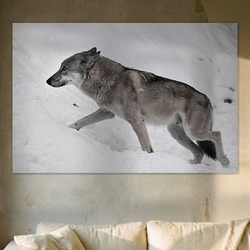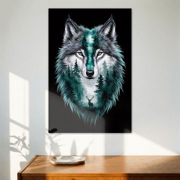 A painting of a wolf is beautiful and inspiring to hang on the wall. Buy a poster of a wolf, or choose for a wolf art print on canvas. Or have the wolf artwork printed life-size on photo wallpaper. There are several high quality materials available for your favourite wall art print of wolves. Choose your preferred size and enjoy the artwork for years to come.
