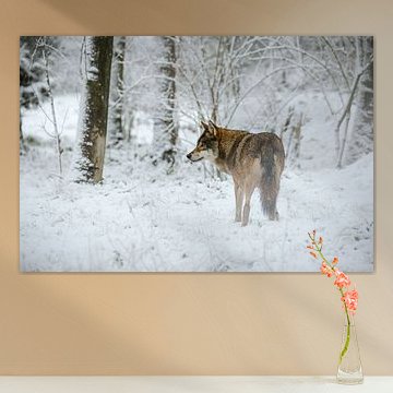 A painting of a wolf is beautiful and inspiring to hang on the wall. Buy a poster of a wolf, or choose for a wolf art print on canvas. Or have the wolf artwork printed life-size on photo wallpaper. There are several high quality materials available for your favourite wall art print of wolves. Choose your preferred size and enjoy the artwork for years to come.
