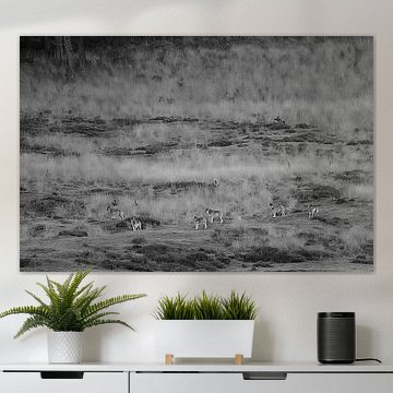 A painting of a wolf is beautiful and inspiring to hang on the wall. Buy a poster of a wolf, or choose for a wolf art print on canvas. Or have the wolf artwork printed life-size on photo wallpaper. There are several high quality materials available for your favourite wall art print of wolves. Choose your preferred size and enjoy the artwork for years to come.