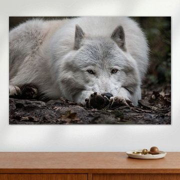 A painting of a wolf is beautiful and inspiring to hang on the wall. Buy a poster of a wolf, or choose for a wolf art print on canvas. Or have the wolf artwork printed life-size on photo wallpaper. There are several high quality materials available for your favourite wall art print of wolves. Choose your preferred size and enjoy the artwork for years to come.