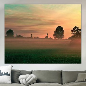 Mauve and purple hues create a serene, sophisticated atmosphere when paired with warm wood or natural textiles. These soft tones work beautifully alongside beige, taupe or grey accents in your room. The delicate dawn colours in Morning has broken... pair well with linen cushions or light oak furniture for a balanced, calming interior.