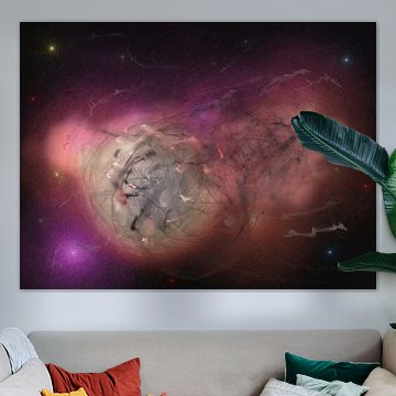 Collectie schilderijen van het heelal planeten, nebulas en noorderlicht