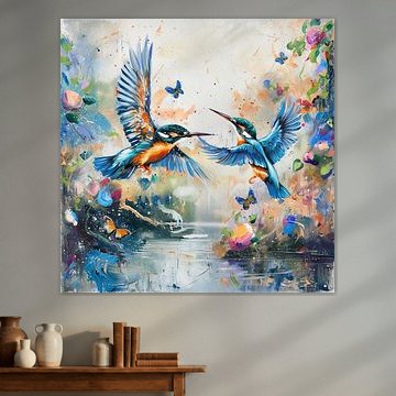 Ijsvogels on canvas, poster, wallpaper and ArtFrame by Mel Digital Art