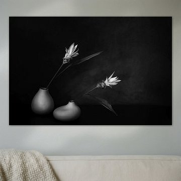Zen still life with Turmeric flowers in B&W .