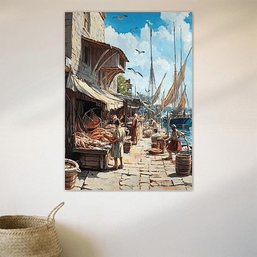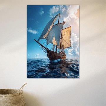 These works of art capture the endless expanse and the untamed power of the sea. Nautical art tells of adventures on the high seas, the longing for distant horizons and the deep connection between man and the ocean. The motifs range from majestic sailing ships crashing through roaring waves to tranquil harbour views at sunset and old nautical charts that preserve the secrets of past voyages. Lighthouses defy stormy winds, whales and dolphins glide through mystical depths, and compasses, anchors and steering wheels symbolise orientation and a thirst for adventure. In terms of colour, deep navy blue, strong turquoise and warm gold dominate, capturing the movement of the water and the play of light. Depending on the style, the depiction can be realistic and rich in detail, with finely detailed wave structures and sails, or stylised and minimalist, with gentle watercolour gradients and elegant lines. Whether as seafaring romanticism, maritime still lifes or modern nautical abstractions, these works of art invite you to feel the sound of the waves, hear the wind in the sails and experience the magic of the ocean.