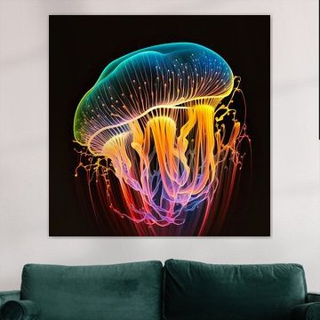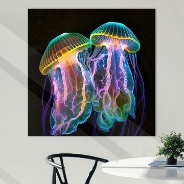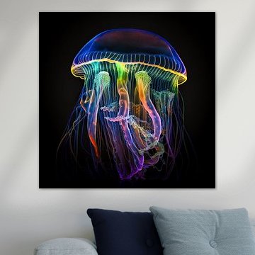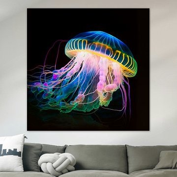Neon kwallen (AI) on canvas, poster, wallpaper and ArtFrame by Digital Art Nederland