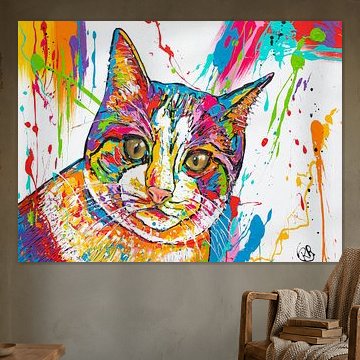 Poezen en Honden on canvas, poster, wallpaper and ArtFrame by Happy Paintings / Renata Rolefes