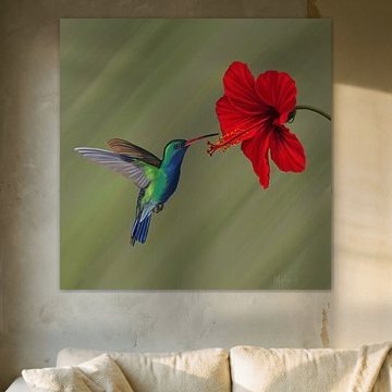 Ik maak, naast grafische vormgeving en fotografie, ook regelmatig schilderijen. Sinds ik ook het digitale illustreren én schilderen heb ontdekt, is haast geen onderwerp meer veilig... De kolibrie is één van mijn eerste werken wat ik op een acceptabele grootte heb gemaakt.