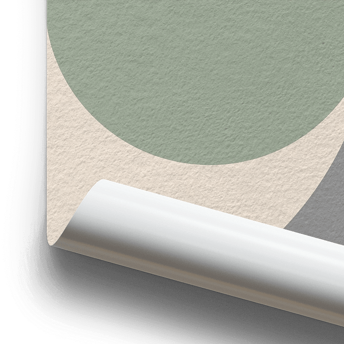 Buy this abstract artwork Bauhaus and retro 70s inspired geometry in grey, green, white by Dina Dankers on canvas, ArtFrame, poster and wallpaper, printed on demand in high quality.