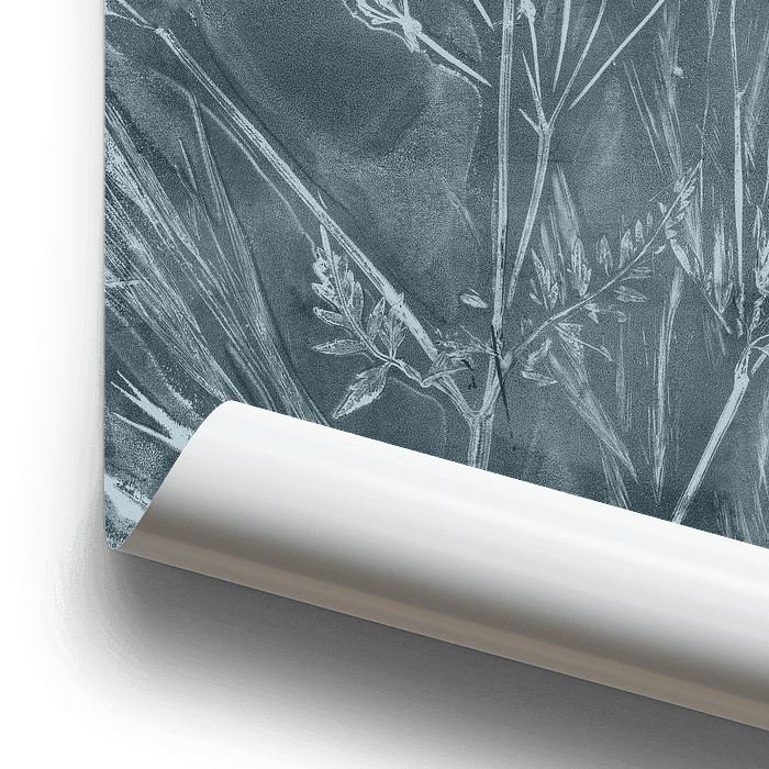 Botanical art in wabi-sabi style. Grey blue and white. by Dina Dankers