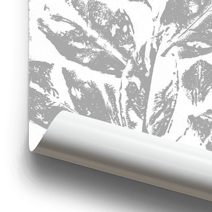 Buy this abstract artwork Branch with leaves in retro style. Modern botanical minimalist art in grey and white by Dina Dankers on canvas, ArtFrame, poster and wallpaper, printed on demand in high quality.