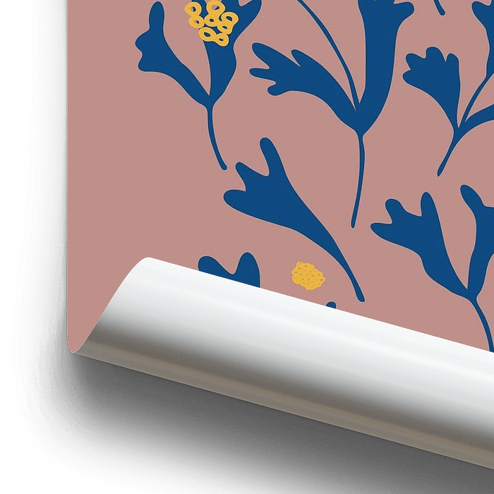 Flower market. Modern botanical art in blue, yellow, light cacao by Dina Dankers