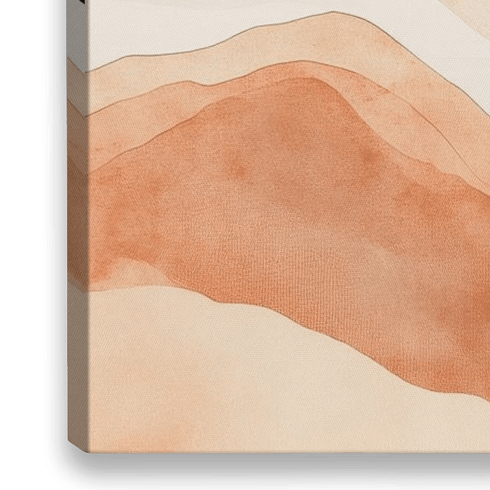 A harmonious landscape unfolds in soft earthy tones, conveying a feeling of peace and space. The curved hills invite you to dream and bring a warm, inviting atmosphere to any room. Ideal for the living room, it creates a relaxing backdrop that invites you to linger and stimulates conversation.